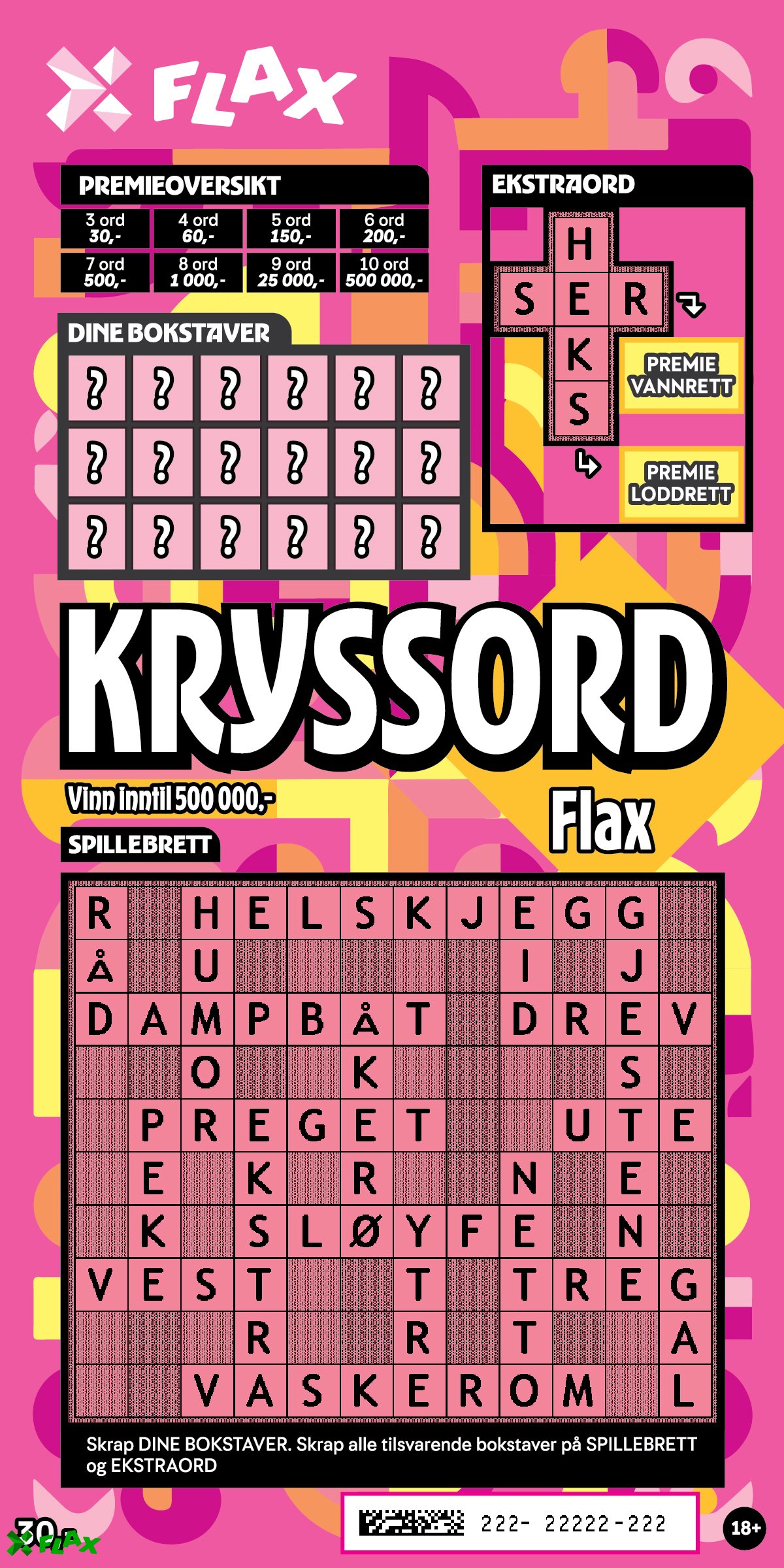 Spenning som varer lenge! Et spill hvor man koser seg med å skrape fram flere riktige ord, sammen med kaffekoppen! Her er toppremien 500.000 kroner.